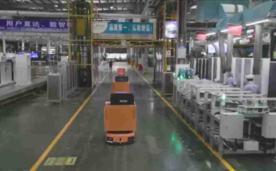 为车载冰箱物流配送打造的智能解决方案,,包含产中物流通过潜伏举升AMR搬运至线边,,,,产后成品物流智能仓储,,流程包含产中物流智能齐套入库,,,,线边安灯叫料AMR智能配送至线边,,成品入库、、、、出库,,,,通过无人堆高车机器人,,智能仓储管理替代人工作业管理,,实现更高存储、、更高效率、、、、更具柔性化的解决方案。。。。